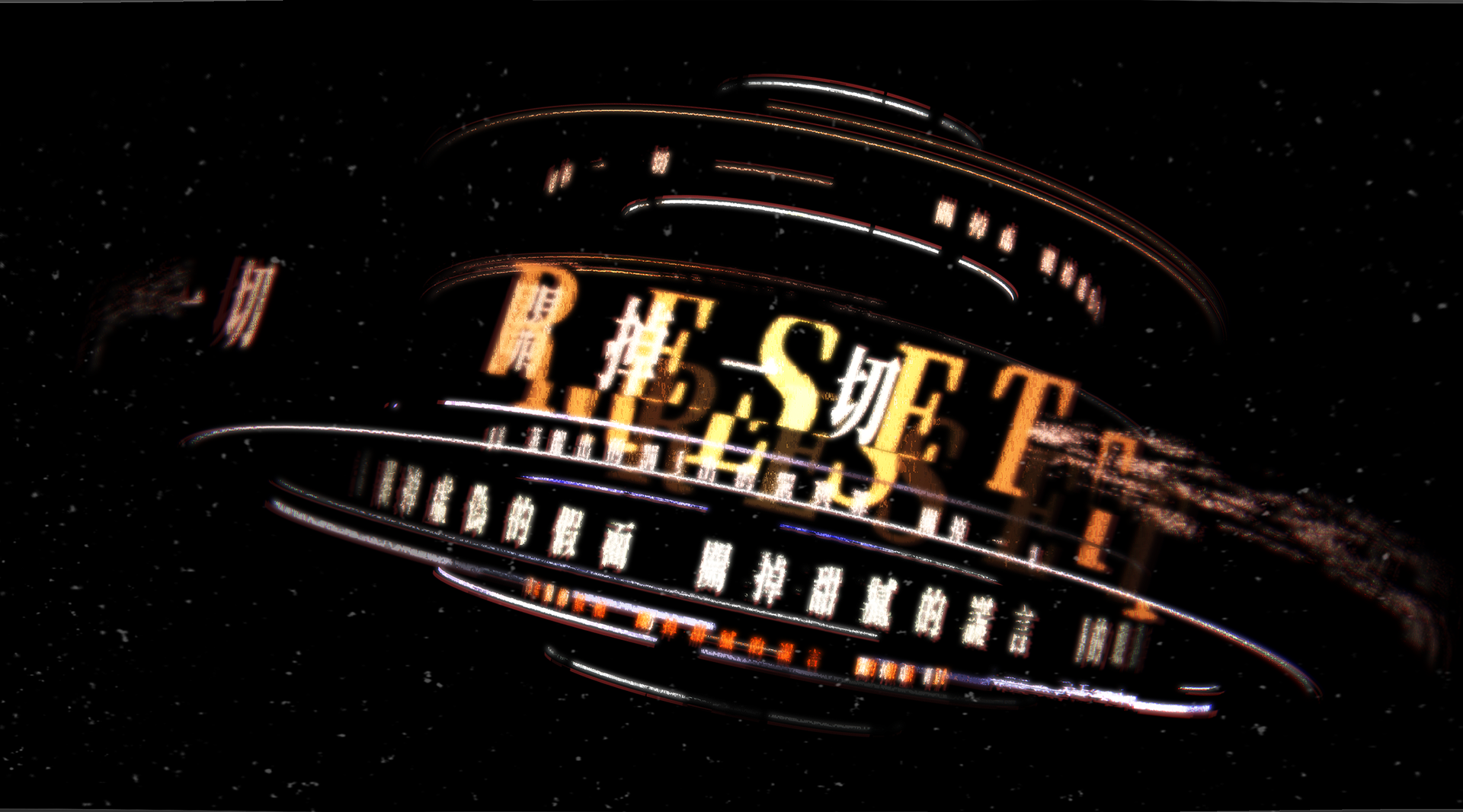 Orbiting through glitch and distortion, where lies loop, masks blur— RESET becomes resistance.